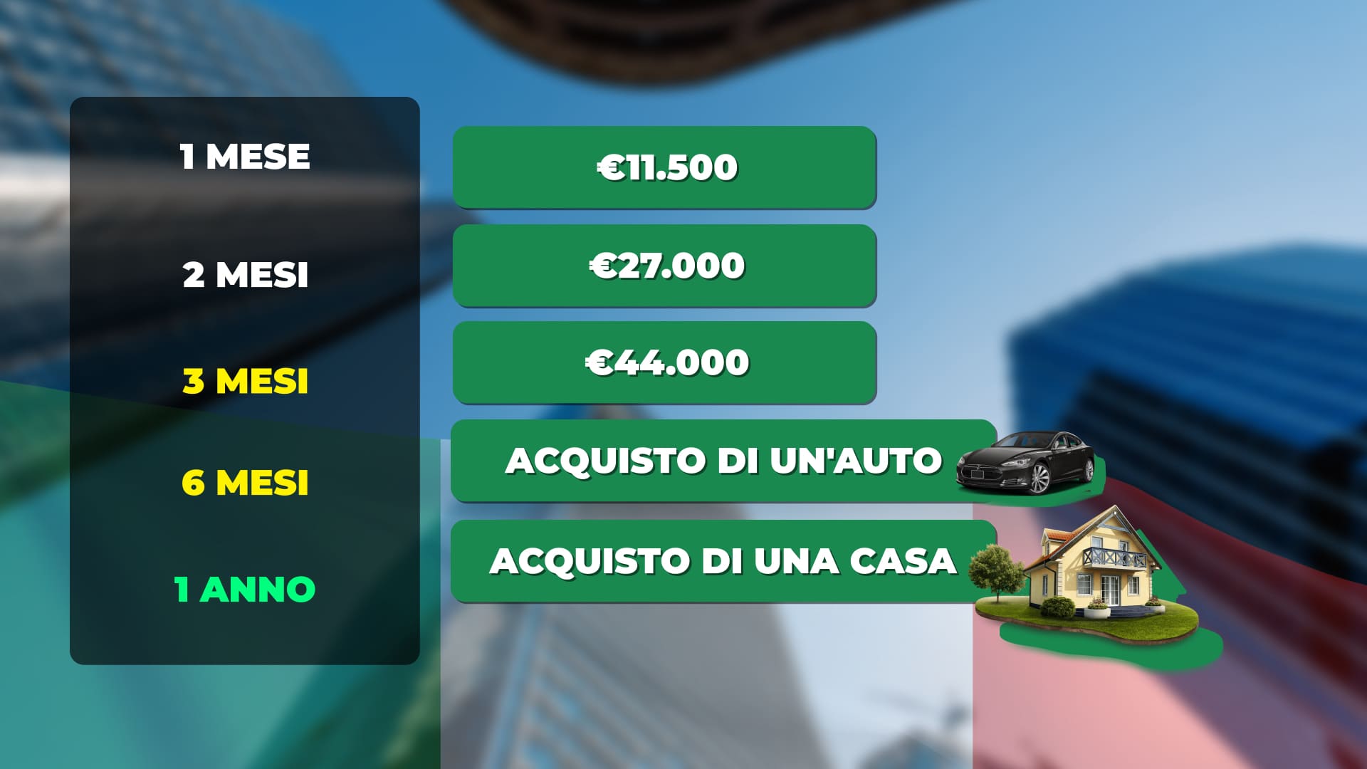 4. Quale somma sei disposto a investire per raggiungere i tuoi obiettivi? (Ci aiuterà a calcolare quanto tempo ti servirà per ottenere il reddito desiderato.)